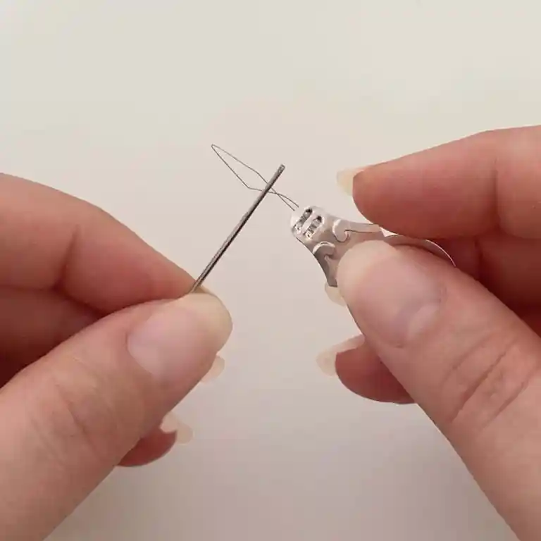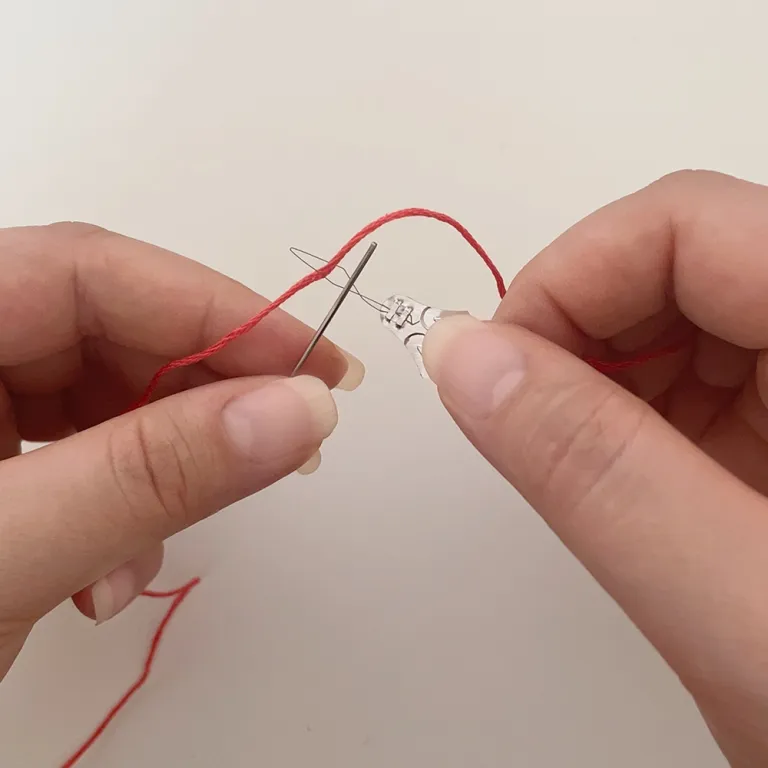 If you’re finding it difficult to thread the needle manually, a needle threader can help: